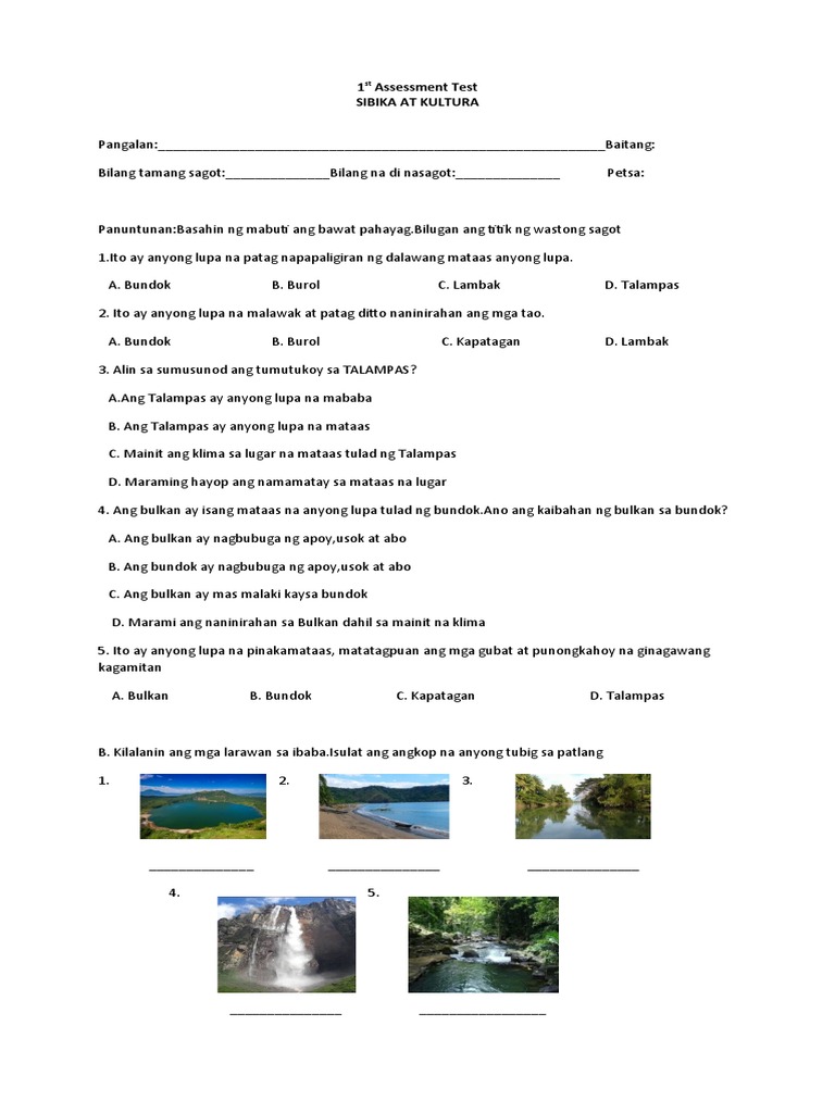 Answers Other tasks in the category. Ito ay isang mababa at patag na anyong lupa makikita sa pagitan ng mga bundok. Alin sa mga sumusunod ang naglalarawan sa lawa.